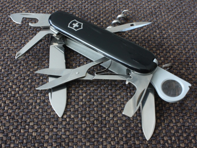 The Victorinox Explorer is basically a Climber with an extra layer. The added tools are a magnifying glass and an inline Phillips screwdriver.